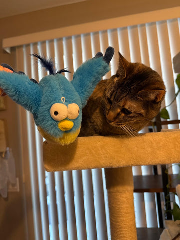 My cats absolutely love this toy. It is huge and flaps around the floor. The cats like to grab it by the wing and drag around the house, sit on top of it and attack, and run by and smack it to activate the chirps. Good entertainment and helps with hunting skills. Just noisy in the middle of the night.
