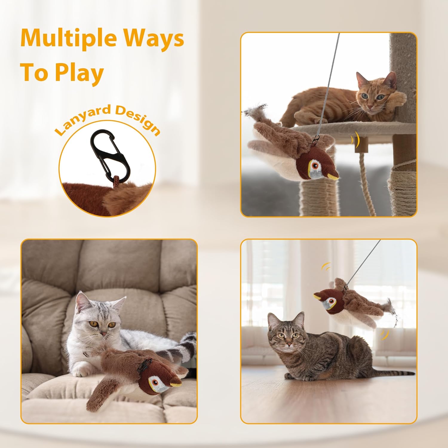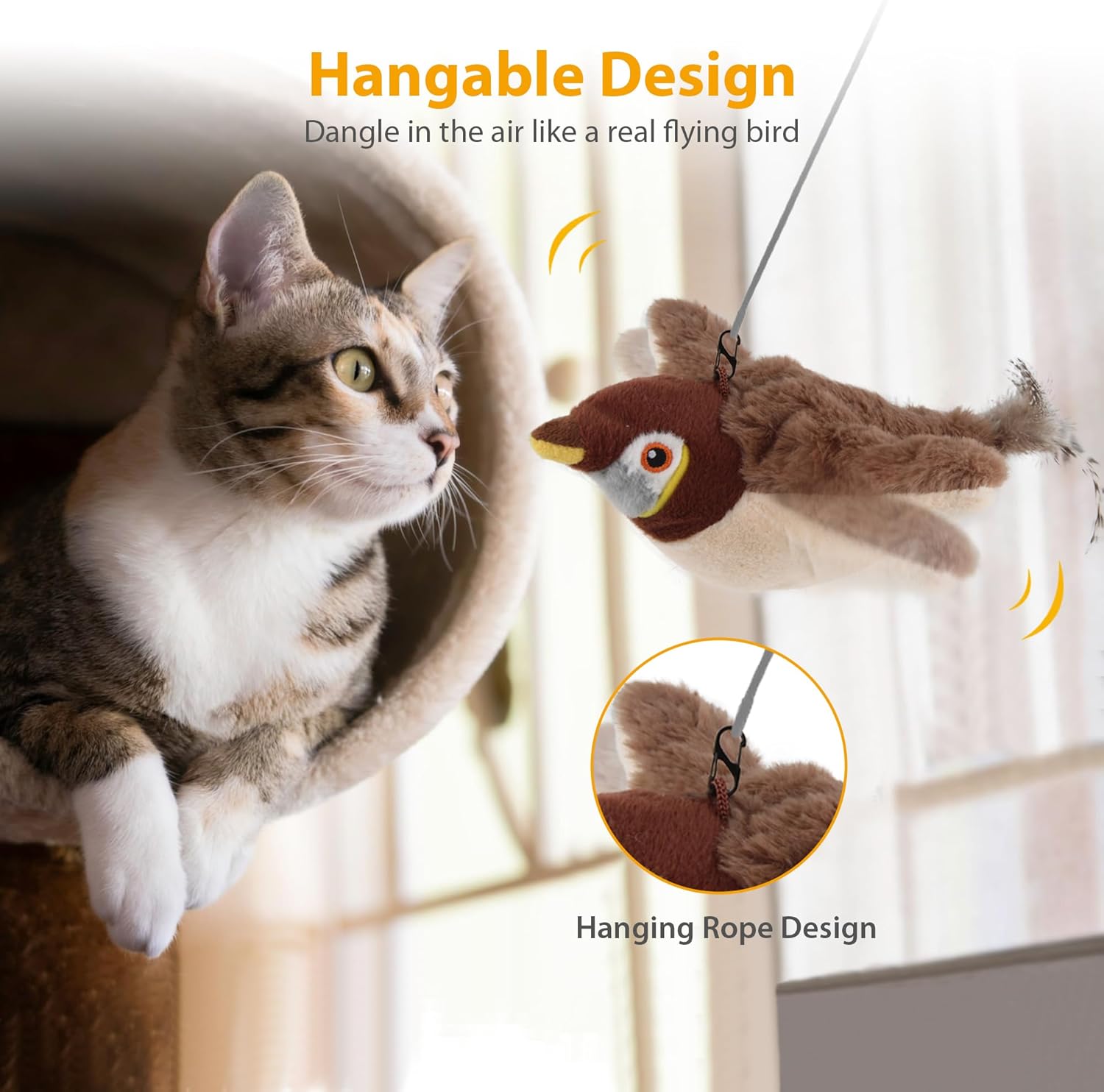 【Hang It, Tease It, Love It】With an attached hook, you can dangle this toy like a real flying bird and watch your cat leap, pounce, and play. It’s the perfect gift for holidays or just because—your cat will thank you with purrs and playful antics! Plus, it comes with a USB cable, catnip, and instructions to get started right away