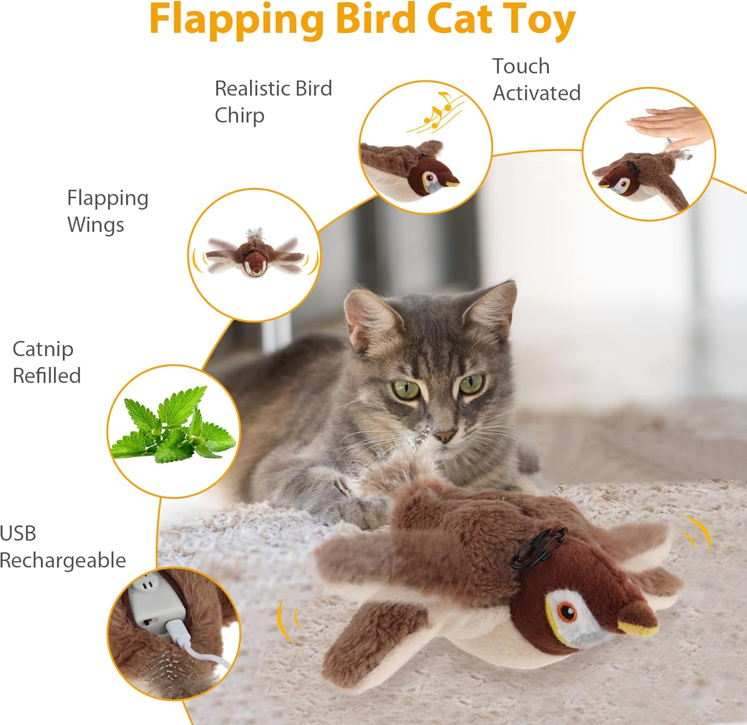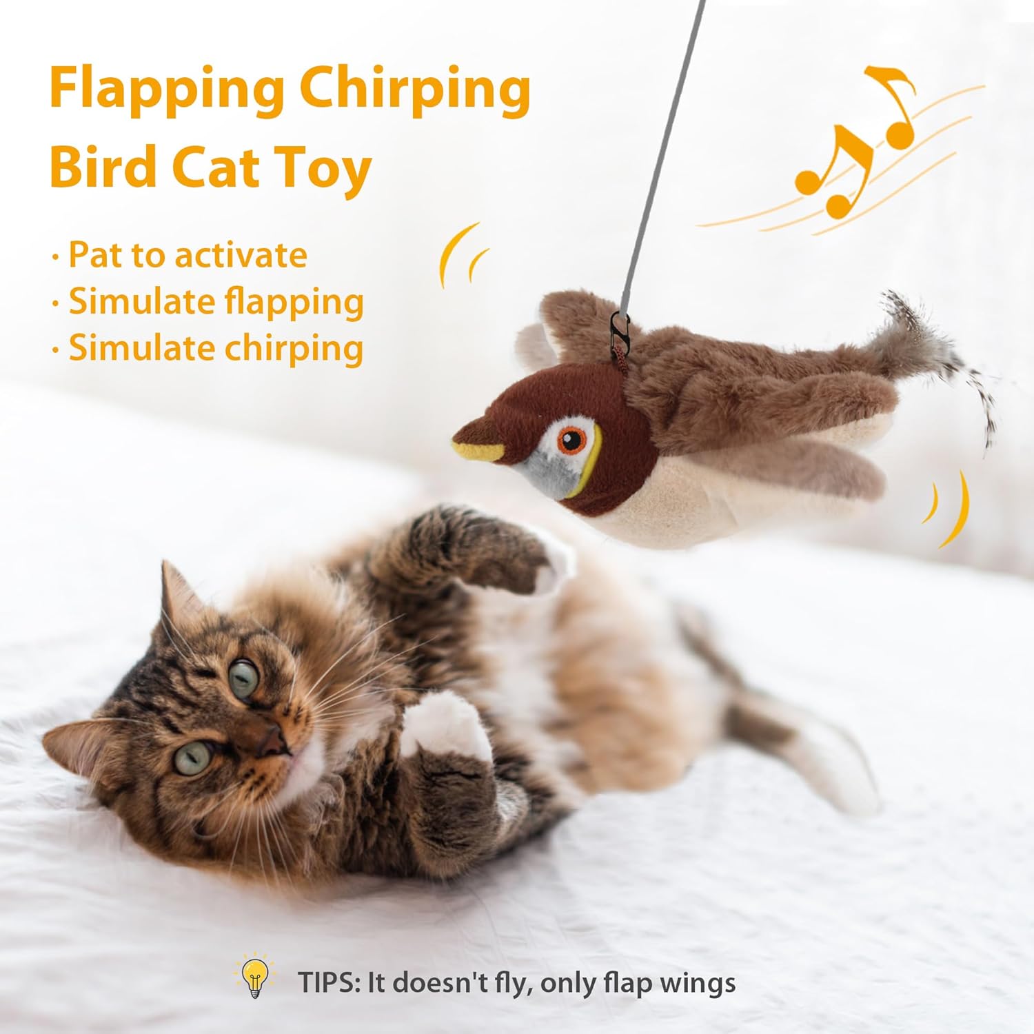 【Flappy Fun for Feline Friends】Watch your kitty go wild with our Flapping Bird Cat Toy! Equipped with a touch sensor, this playful birdie flaps its wings and chirps like the real deal when your cat gives it a pat. It’s the ultimate prey simulation, complete with 3 movement modes and lifelike bird sounds to keep your little hunter entertained for hours!